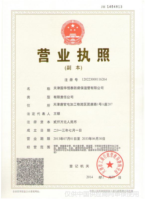 歡迎訪問天津國華恒泰防腐保溫管有限公司! 店鋪星級: ★☆☆☆☆